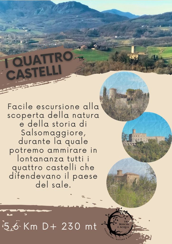 Salsomaggiore Terme è conosciuta fin dai tempi antichi come il paese del sale, e proprio per l’importanza di questo minerale è sempre stata difesa da chi ha avuto il controllo sul suo territorio. Durante questa escursione parleremo della storia di Salso e riusciremo a scorgere tutti i quattro castelli ancora presenti: Tabiano, Bargone, Scipione e Contignaco; oltre a questi scopriremo la posizione di quelli che non ci sono più.